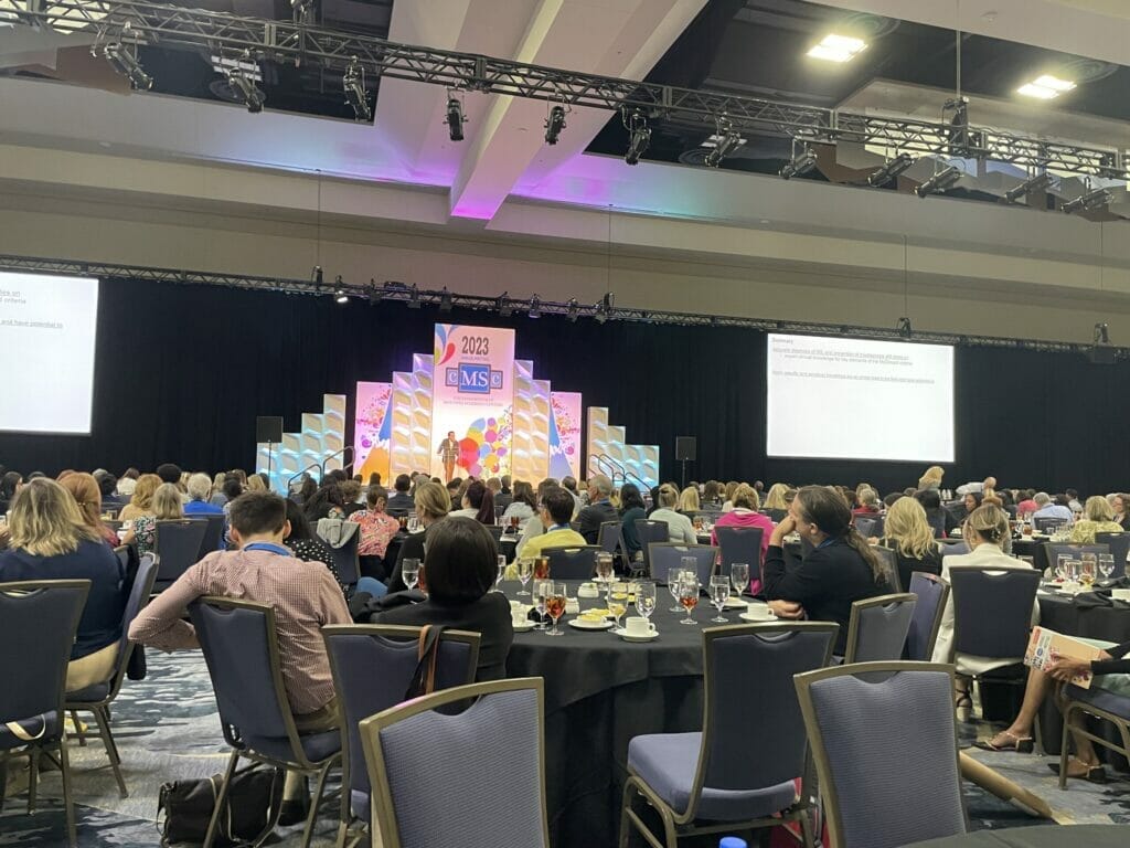At this year’s CMSC chronic “smoldering” inflammation was the focus of many presentations. Chronic inflammation causes symptom progression that occurs in the absence of relapses or new MRI lesions. We attended lectures about ways we might be able to treat it chronic inflammation and how to visualize it with specialized MRIs.
