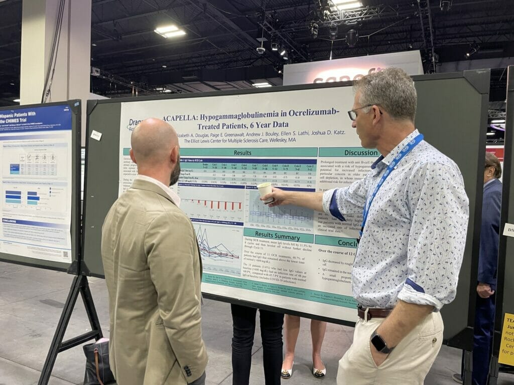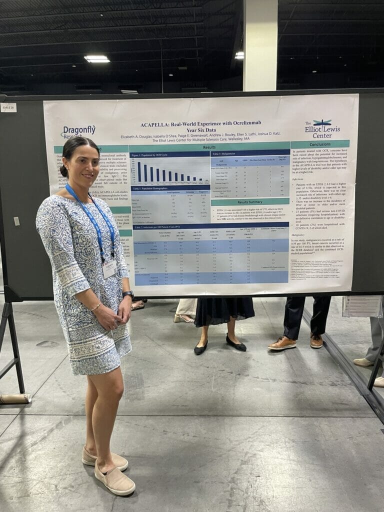 The Elliot Lewis Center and our research department, Dragonfly Research, presented 2 posters at the meeting. Posters presented were focused on our ACAPELLA data. ACAPELLA is our in-house research project, studying the real world experience with Ocrevus. We presented our year six data, as well as our data on hypogammaglobulinemia. These posters and prior research are listed on our website at https://elliotlewisms.com/our-research/