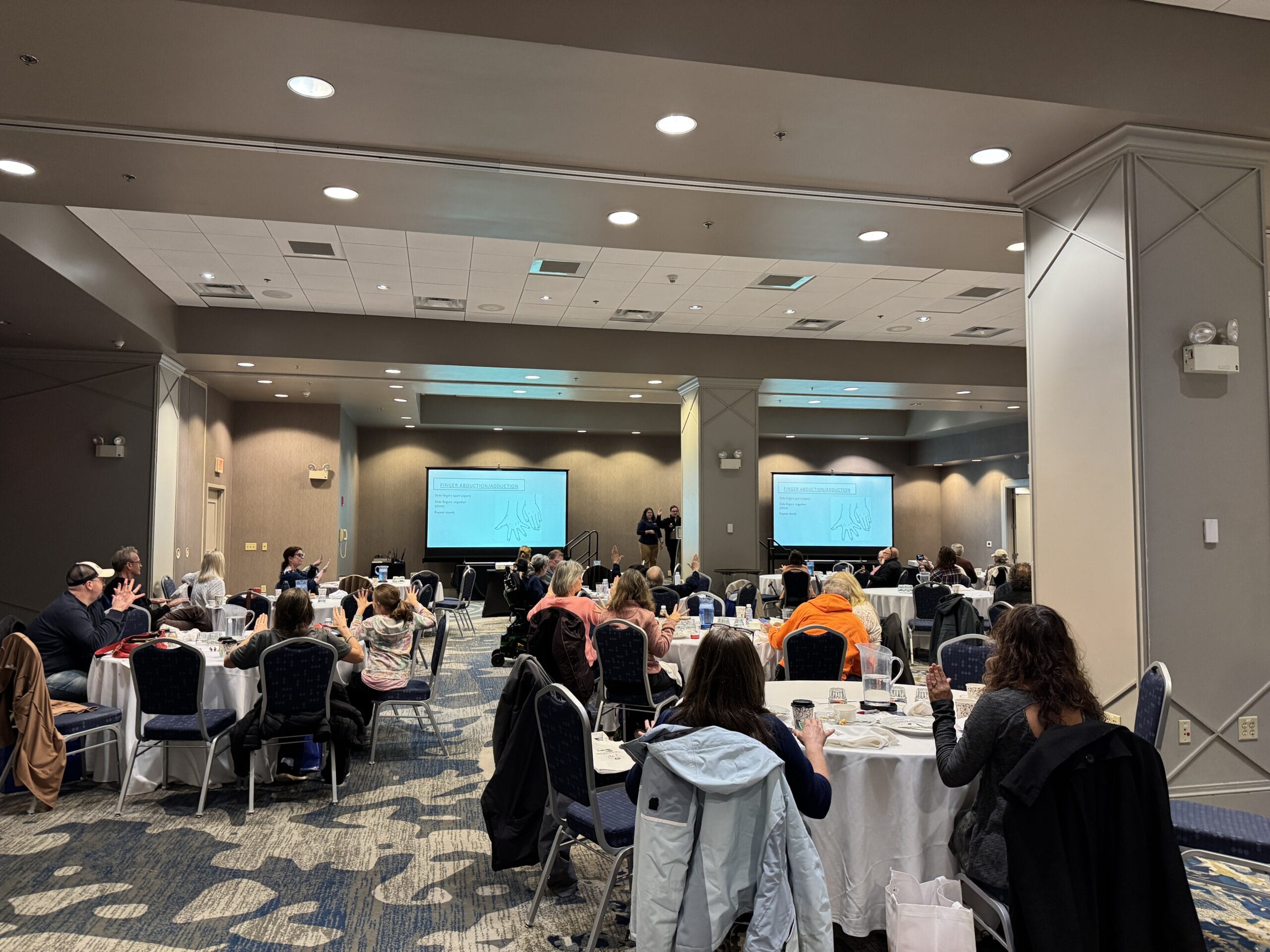The event began with an update from Marissa Shackleton on the ELC Foundation, a nonprofit that helps fill the gaps insurance doesn’t cover, including stairlifts, bathroom adaptations, mobility aids, therapy at home, and adaptive driving tools. Seeing how these programs directly change lives and promote independence reminded everyone why our program is so valuable. Attendees were encouraged to apply if needing assistance.