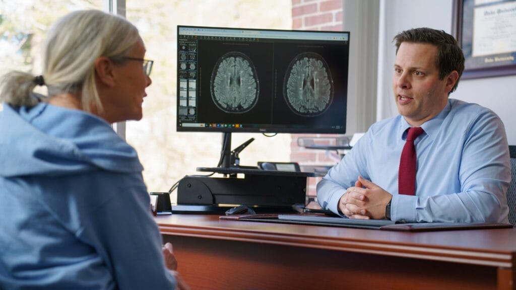 Published in Undark 03.03.2025By Jyoti Madhusoodanan Neurologist Dr. Andrew Bouley, right, speaks with his patient Emily Wheeler while they look at her brain scans in ...